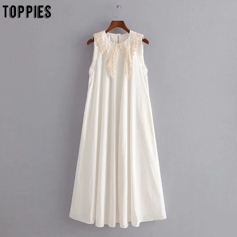 Женское винтажное платье-миди toppies, белое платье из поплина с вышивкой без рукавов, свободное платье