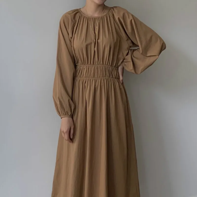 Женское весеннее длинное платье с длинным рукавом и рюшами, круглый воротник, эластичный пуловер с высокой талией, Короткие однотонные плат...