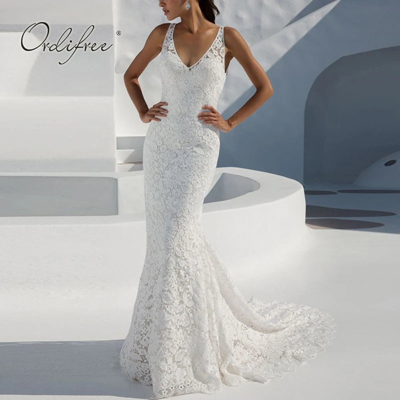 Ordifree 2020 летние женские длинные вечерние сексуальные платья без рукавов с открытой спиной длиной до пола, белое кружевное Макси платье