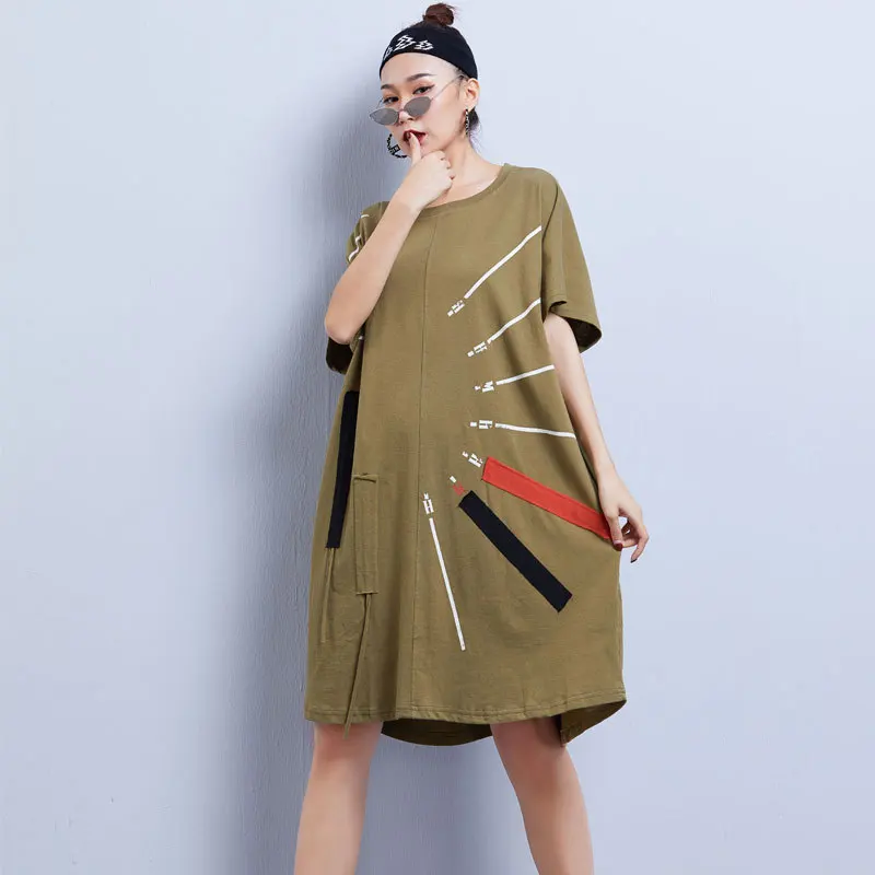 LANMREM, новинка 2020, весна-лето, круглый воротник, хит, цвет, средней длины, платье для женщин, Ретро стиль, свободный, большой размер, неровные топы, PD834