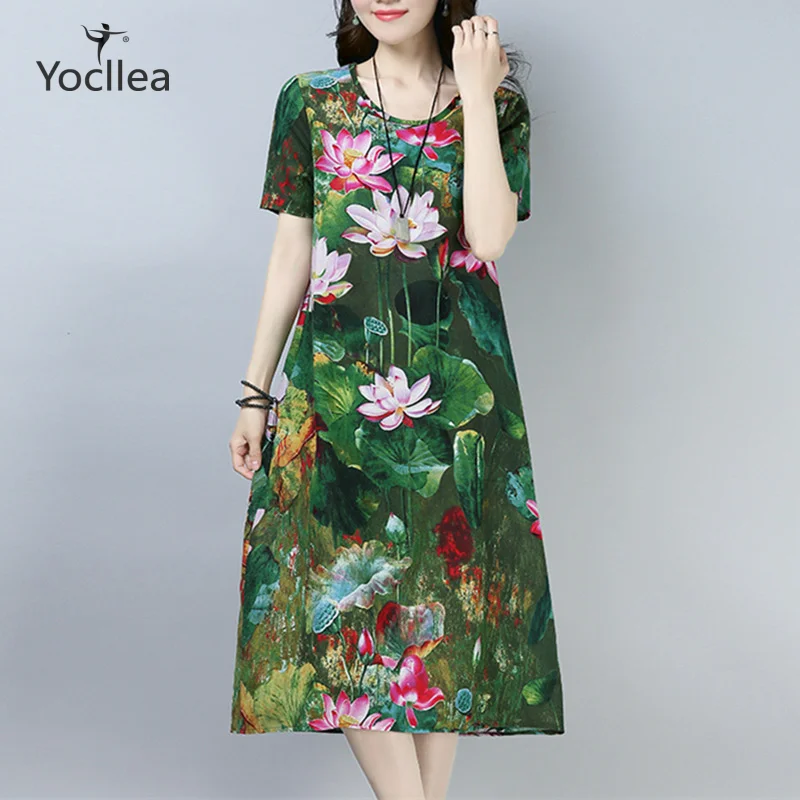 Летнее платье с коротким рукавом, винтажное платье с принтом, женское длинное хлопковое льняное повседневное платье, офисное женское платье размера плюс, свободные платья для работы, vetidos