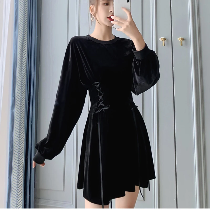Осенне-зимнее женское бархатное платье 2019 Новое готическое длинное платье с рукавом «летучая мышь» и круглым вырезом, сексуальное женское ...