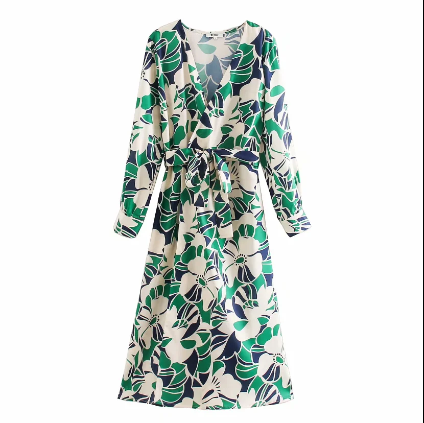 Новинка 2020, женское элегантное платье с цветочным принтом, с бантом, с поясом, женское платье-миди, с длинным рукавом, Vestido, шикарное платье с ...
