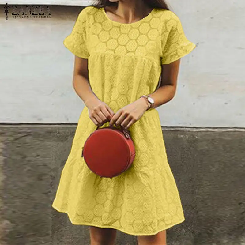 2019 летнее Повседневное платье ZANZEA с круглым вырезом, модный кружевной сарафан в стиле пэчворк, Женские однотонные вечерние платья с коротки...