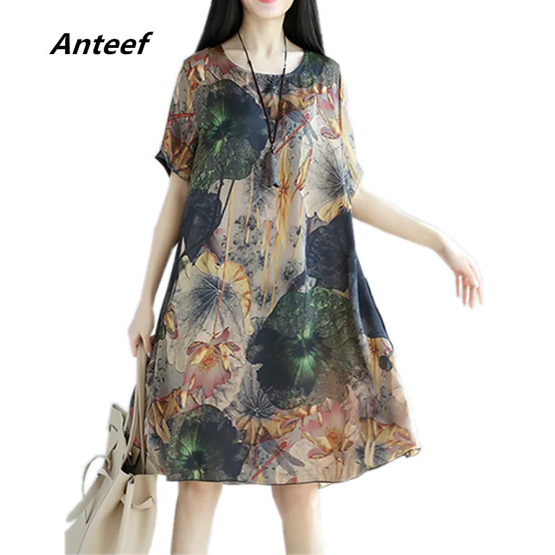 Шифон Урожай Цветочные Большие размеры женские повседневные свободные миди летнее платье Элегантное платье одежда 2019 женские платья Сараф...