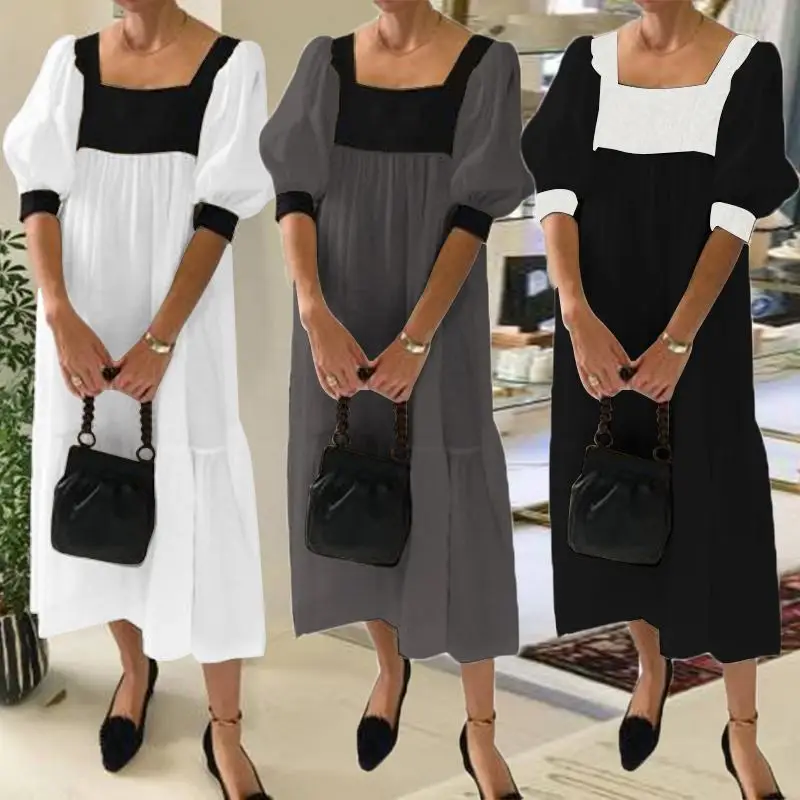 Женское платье Celmia 2019 Летняя женская одежда квадратным воротником повседневные свободные в стиле пэтчворк ретрорубашка платье плюс Размер...