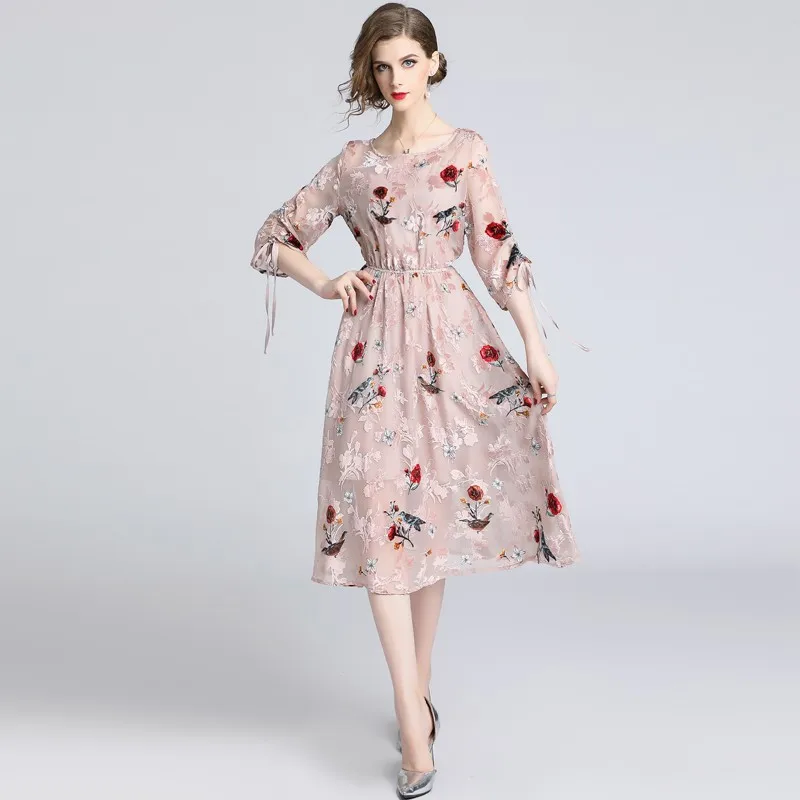 Весенне-летнее женское платье в стиле знаменитостей, с вышивкой и оборками, в стиле ретро, с круглым вырезом, благородный цветочный Элегантный женский комплект из двух предметов, платье L-5XL