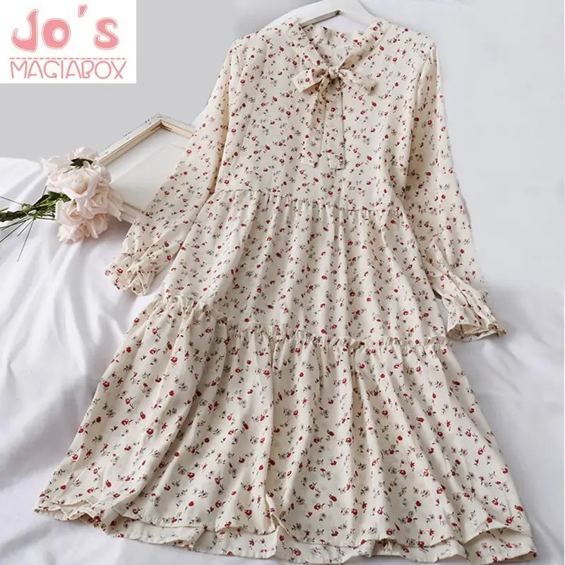Женское корейское платье трапециевидной формы с принтом, женские вечерние платья с длинным рукавом, v-образным вырезом и бантом, милое плать...