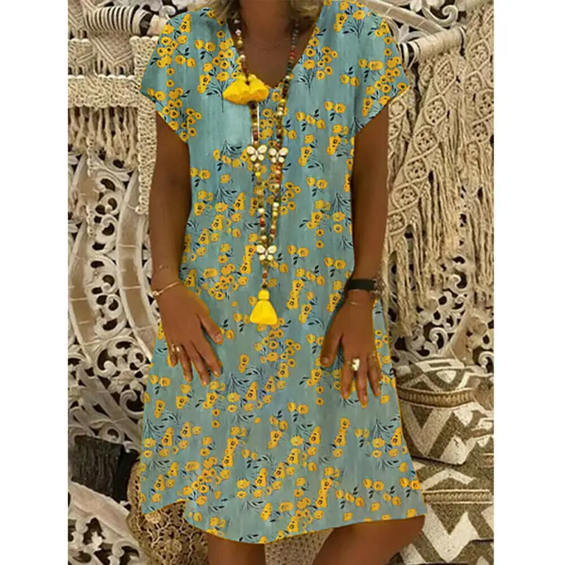 Новая женская с короткими рукавами Boho вечерние Повседневный кафтан платье длинные платья летнее Сексуальное Женское Платье с принтом