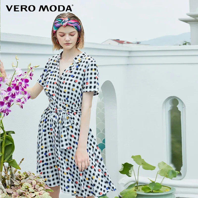 Платье в клетку с v-образным вырезом и короткими рукавами Vero Moda | 3192SZ507