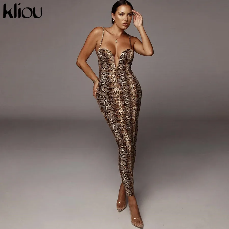 Kliou, сексуальное, змеиный принт, женское, без рукавов, с открытой спиной, элегантное, тонкое, платье карандаш, 2020, регулируемый плечевой ремень, платье для банкета