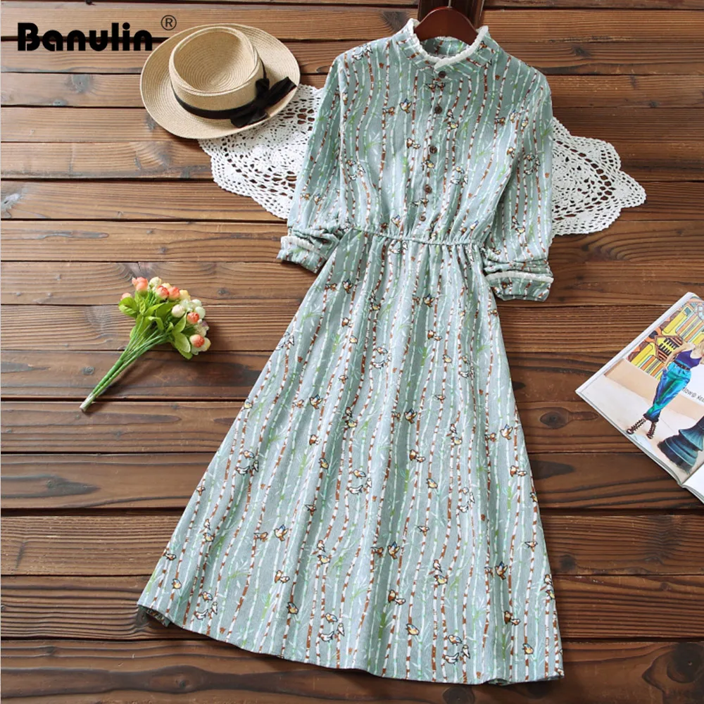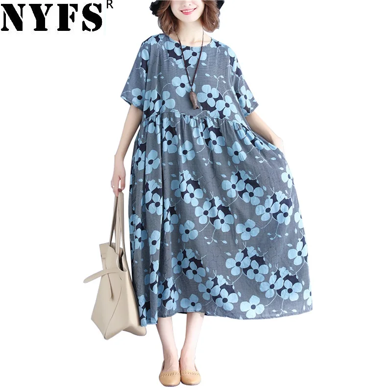 NYFS 2019 новое летнее хлопковое льняное женское платье винтажное Свободное длинное платье с принтом vestidos robe