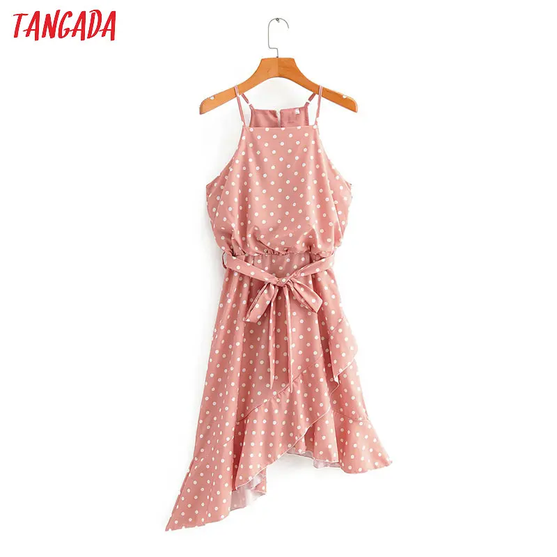 Tangada женское пляжное платье в розовый горошек без рукавов 2020 летний женский сарафан с разрезом SY81