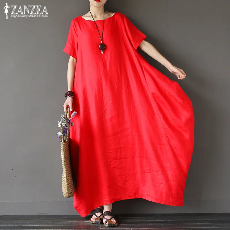 Летний сарафан ZANZEA большого размера, повседневное хлопковое женское Макси-Платье, Элегантная туника с коротким рукавом, Vestidos, Женский мешковатый халат 5XL, 2020