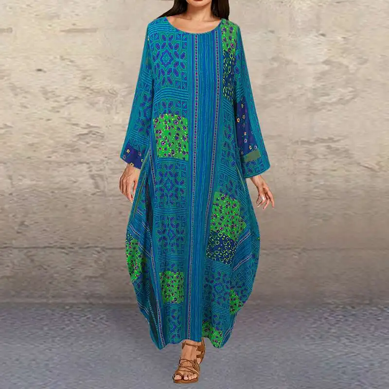 Женское Хлопковое платье с цветочным принтом ZANZEA, винтажное длинное платье макси большого размера, весна 2020