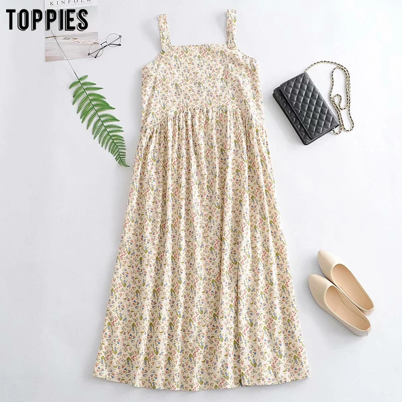 Toppies/летнее Хлопковое платье-майка с цветочным принтом; Платье миди; Пикантный сарафан с открытой спиной; Милая праздничная одежда