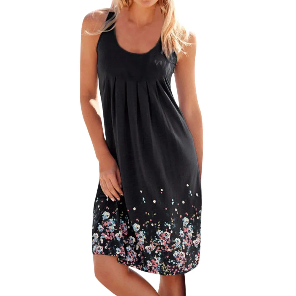 SAGACE платье для женщин Лето 2019 г. печати для вечеринки без рукавов пляжное без рукавов жилет Сарафан свободное женская мода