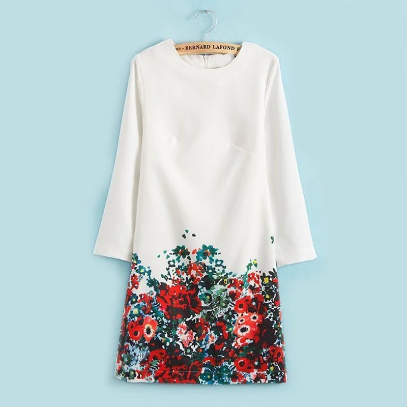 2017 весеннее платье Вышивка крестом пакет бедра Повседневное платье с длинным рукавом Женская одежда с принтом тонкий белый