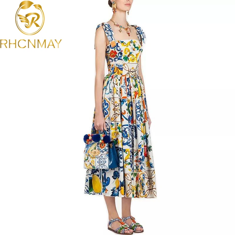 Винтажное летнее платье без рукавов с принтом 2019 Модные женские тонкие повседневные пляжные длинные платья на бретельках в стиле ретро Vestidos