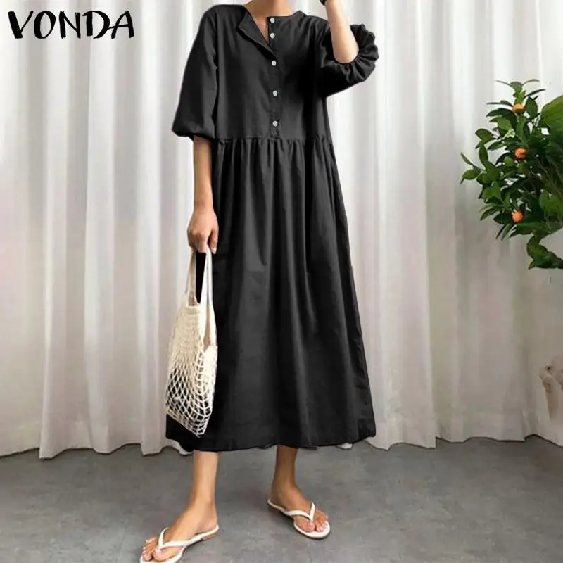 Женское хлопковое льняное платье VONDA 20202, летнее женское сексуальное повседневное вечернее платье до середины икры с рукавом до локтя, пляжный сарафан, Vestido размера плюс
