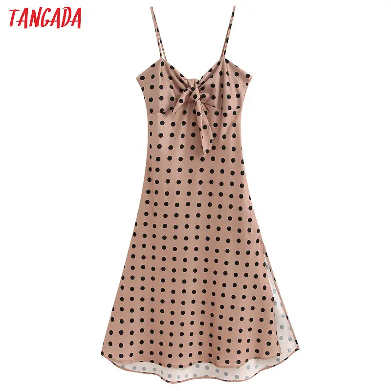 Tangada женское сексуальное платье миди с принтом в горошек для женщин 2020 модное платье на бретельках туника миди BE155