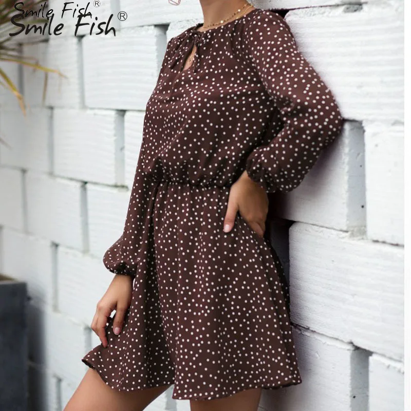 Модное шифоновое платье Для женщин с трапецеевидным силуэтом для Офисные женские туфли женские платья Кофе 2019 и o-образным вырезом, зимний и...