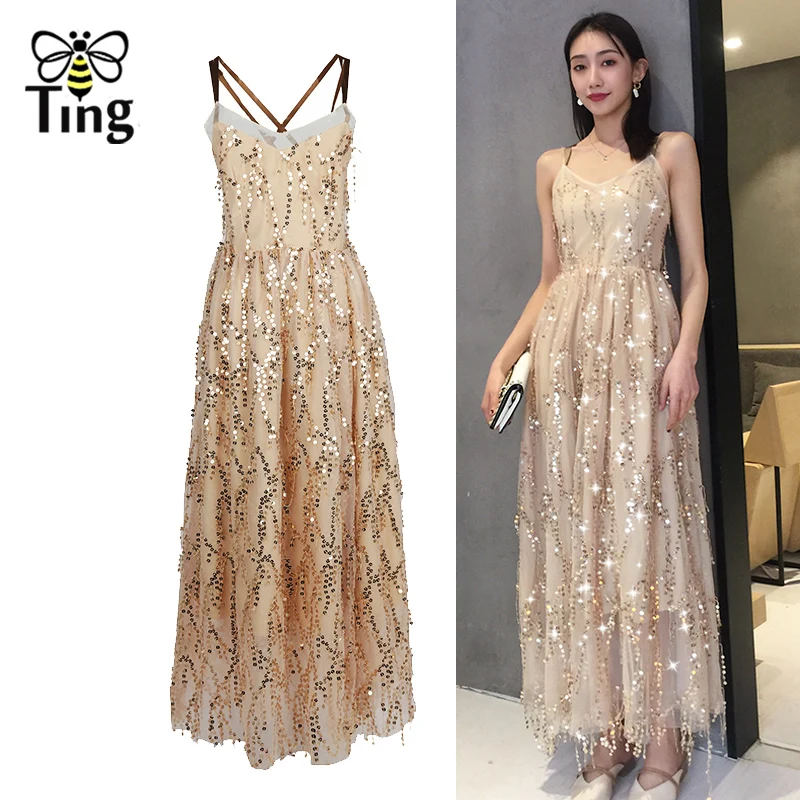 Tingfly 2019 элегантный дизайн Роскошные ночь Длинные Макси Вечерние сексуальные платья с открытой спиной Cross Strap Платье с пайетками Лето повседн...