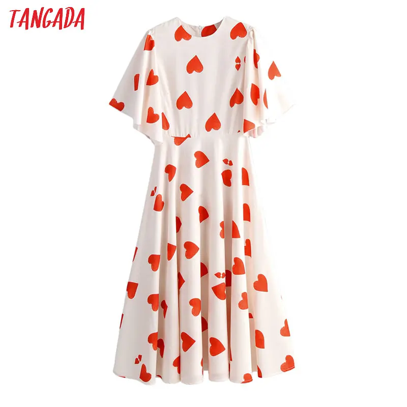 Tangada, модное женское летнее платье, принт красное сердце, молния сзади, расклешенное, короткий рукав, офисное, миди платье, Vestidos 1F36