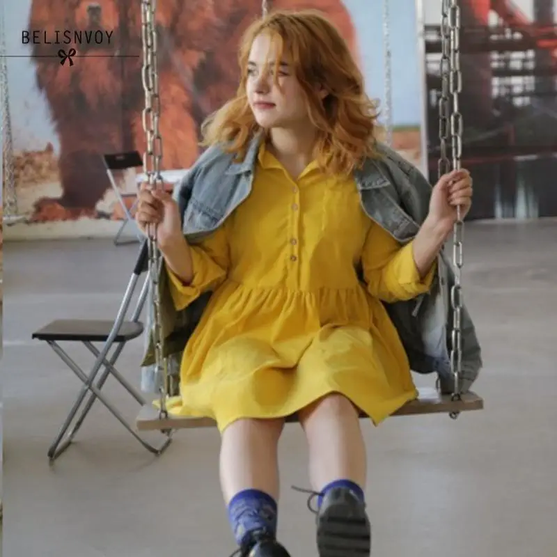 Высококачественное винтажное вельветовое женское платье с длинными рукавами и воротником Питер Пэн Mori Girl, желтые, красные осенне-зимние РУ...