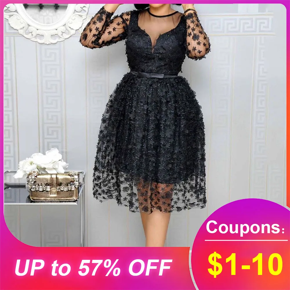 Ретро Черное женское платье трапециевидной формы в африканском стиле, лето 2020, элегантная женская рабочая одежда, вечернее платье средней длины, платье Femme Vestiods Plus 4xl