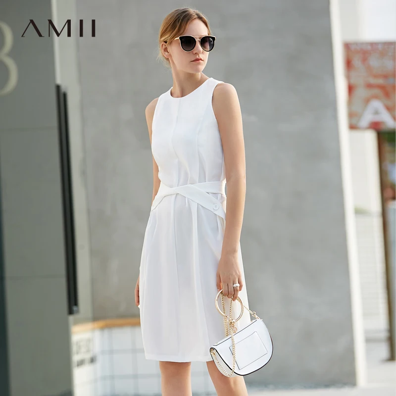 Amii для женщин Минималистский платье 2018 одноцветное трапециевидной формы без рукавов с круглым вырезом женские платья