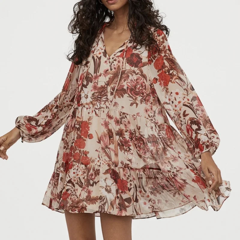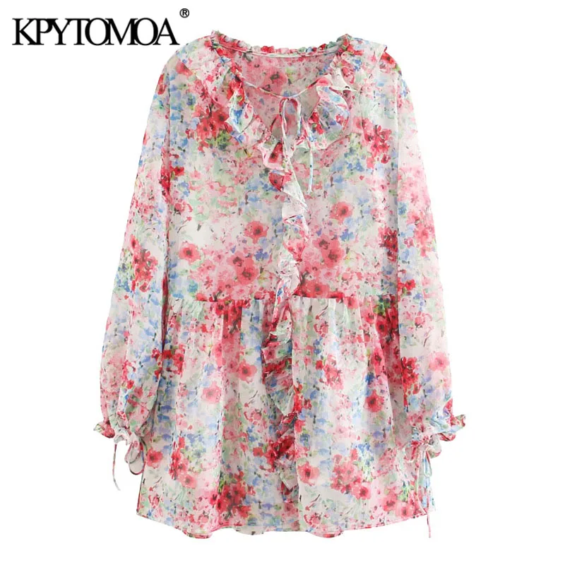 Женское шифоновое платье с цветочным принтом KPYTOMOA, винтажное мини-платье с длинными рукавами и подкладкой, 2020