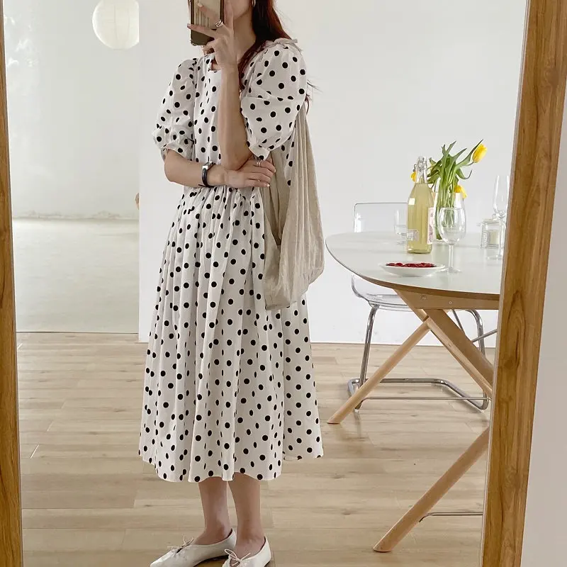Alien Kitty, классическое платье в горошек с круглым вырезом и открытой спиной, 2020, милое, тонкое, новое, популярное, летнее, универсальное, свободное, тонкое платье с рукавами-фонариками