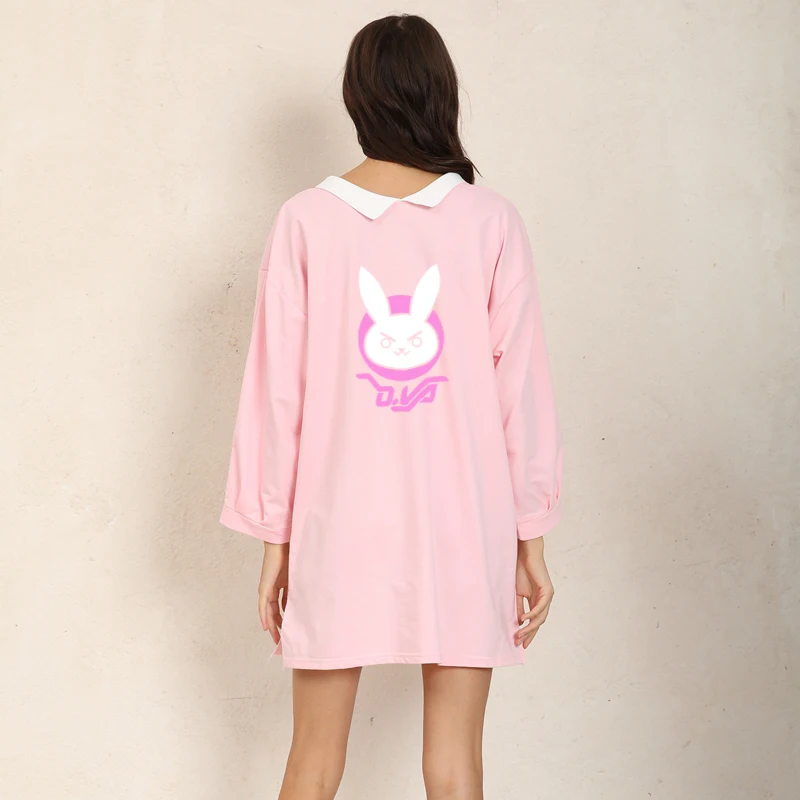 Мода OW DVA кролик D. VA логотип рубашки платья Топы повседневные осенние толстовки хип хоп с длинным рукавом Уличная женская одежда