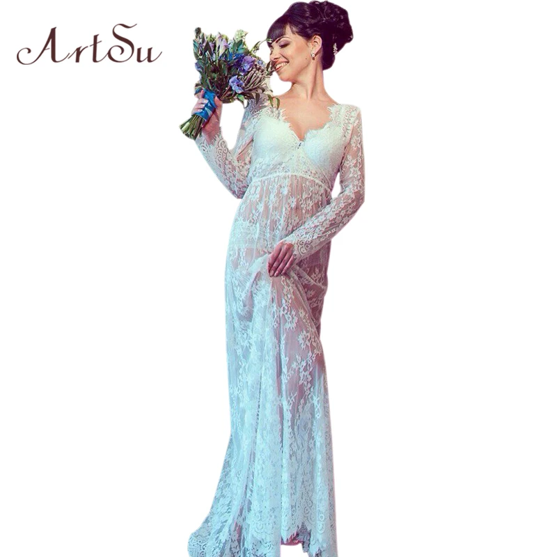 Арцу для женщин 2019 Сексуальная v-образным вырезом с длинным рукавом длинное кружевное платье Лето Цветочный макси vestidos mujer плюс сексуальный ...