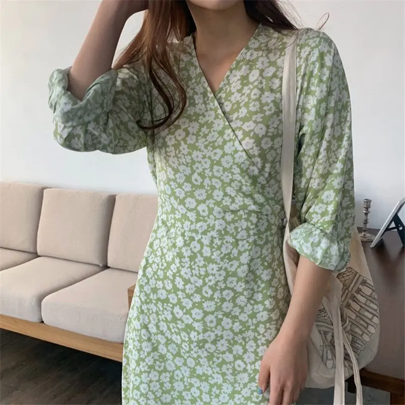 HziriP консервативный стиль Универсальные Цветочные женские короткие тонкие модные 2020 шикарные ретро с v-образным вырезом женские летние винтажные длинные платья