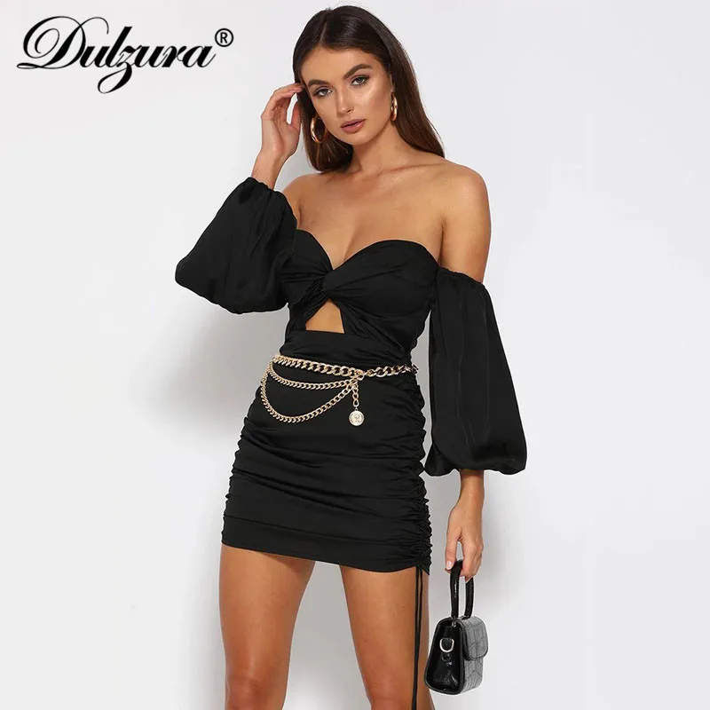 Dulzura 2019 Осень Зима Женское Мини платье для вечеринки атласное вне плечо элегантный шнурок бандажная повязка bodycon сексуальный фестиваль