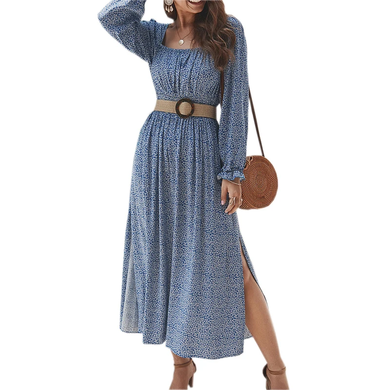 Длинное платье осень Behomian женские платья весна длинный рукав цветочный принт миди женская одежда А-силуэт Новые Вечерние платья GV010