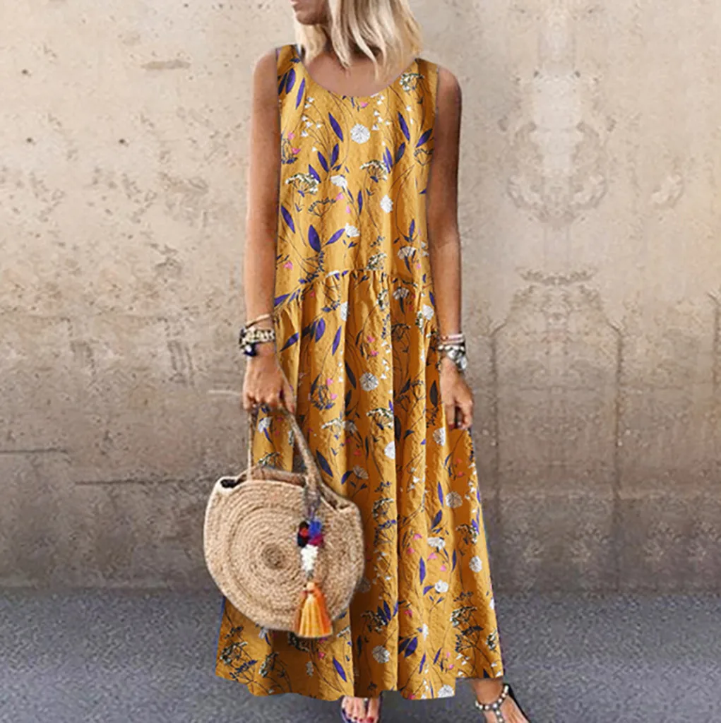 Платье Для женщин в богемном стиле, большого размера рукавов длиной макси летнее платье для женщины О-образным вырезом Цветочный принт Винт...