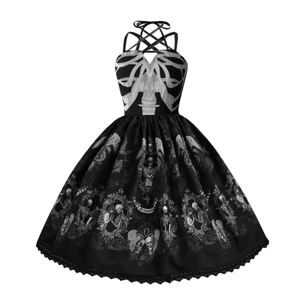 Сексуальное платье для сна, женское модное платье в стиле панк на бретелях с принтом черепа, большие вечерние платья для девочек, M-5L размер, ...