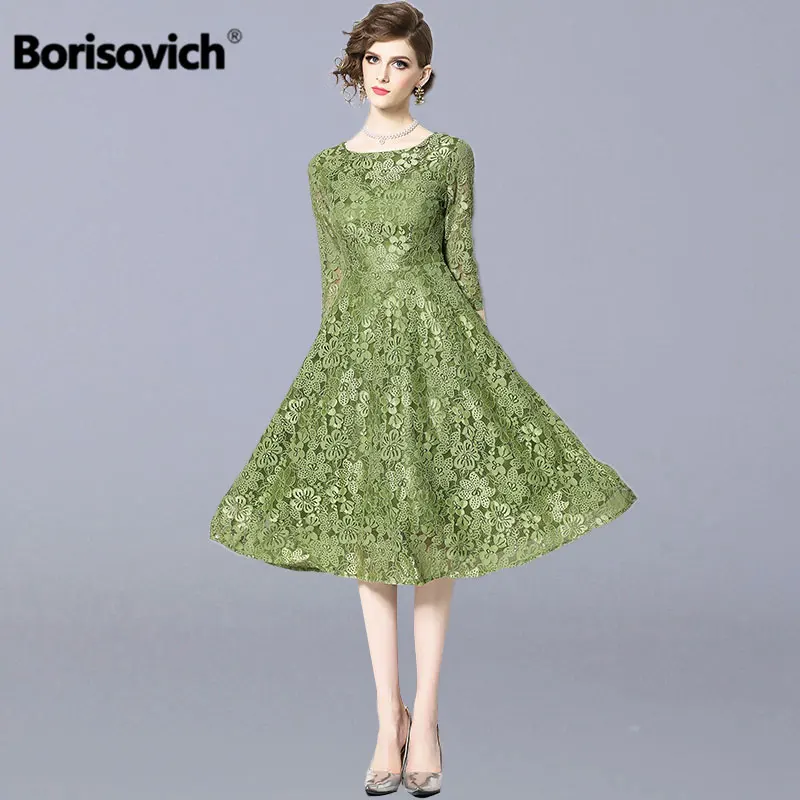 Borisovich женское винтажное повседневное кружевное длинное платье новый бренд 2019 весна мода большие качели элегантные А-силуэта женские вечер...