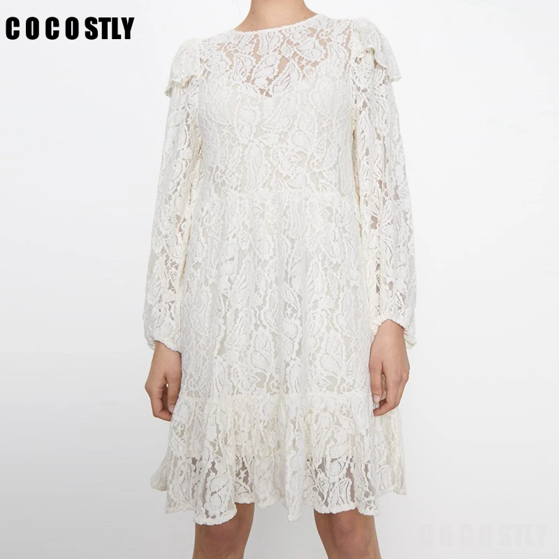 Летнее платье модное женское элегантное кружевное платье с вышивкой с длинным рукавом женское однотонное длинное платье миди vestidos