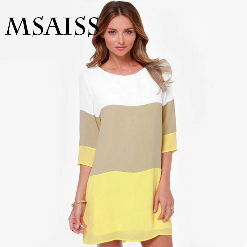 Msaiss Лето Для женщин сращены шифоновые платья Свободные Леди Мини-Платье Повседневное леди Цвет в полоску Платья для женщин
