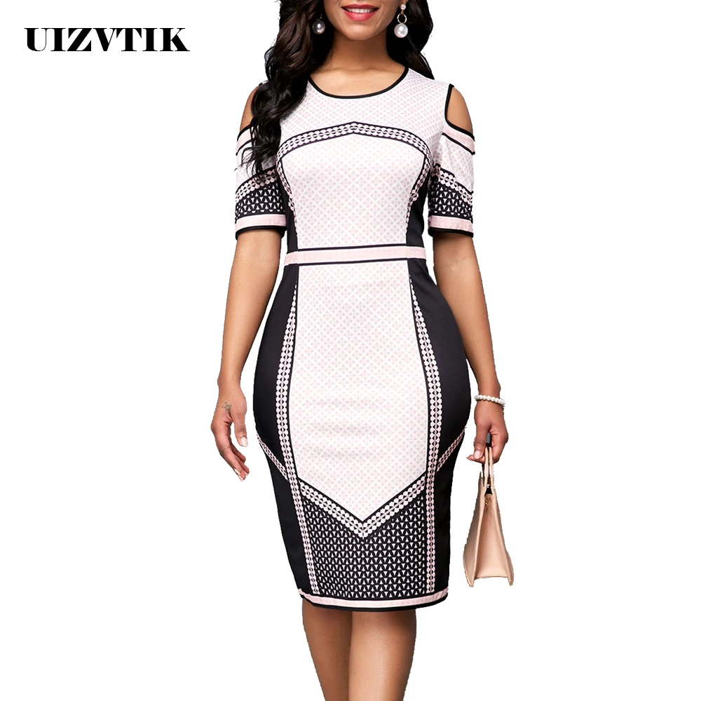 Летнее платье Для женщин 2019 Повседневное плюс Размеры тонкий печати офисное элегантное облегающее платье Винтаж сексуальное платье с откр...