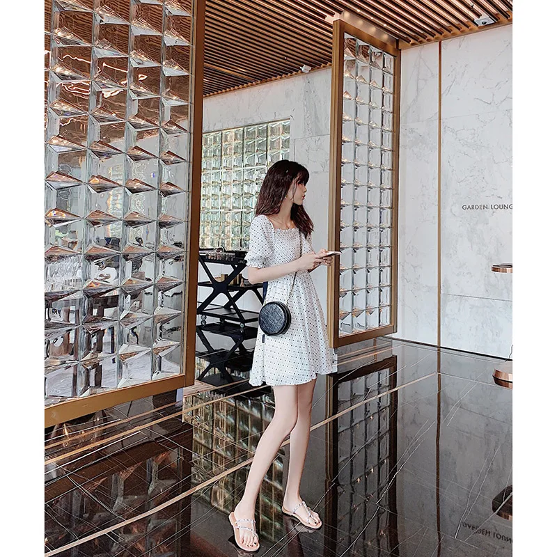 Mishow 2019 шифоновое женское мини-платье с волнистыми точками женское винтажное платье с квадратным воротником и коротким рукавом Элегантное п...