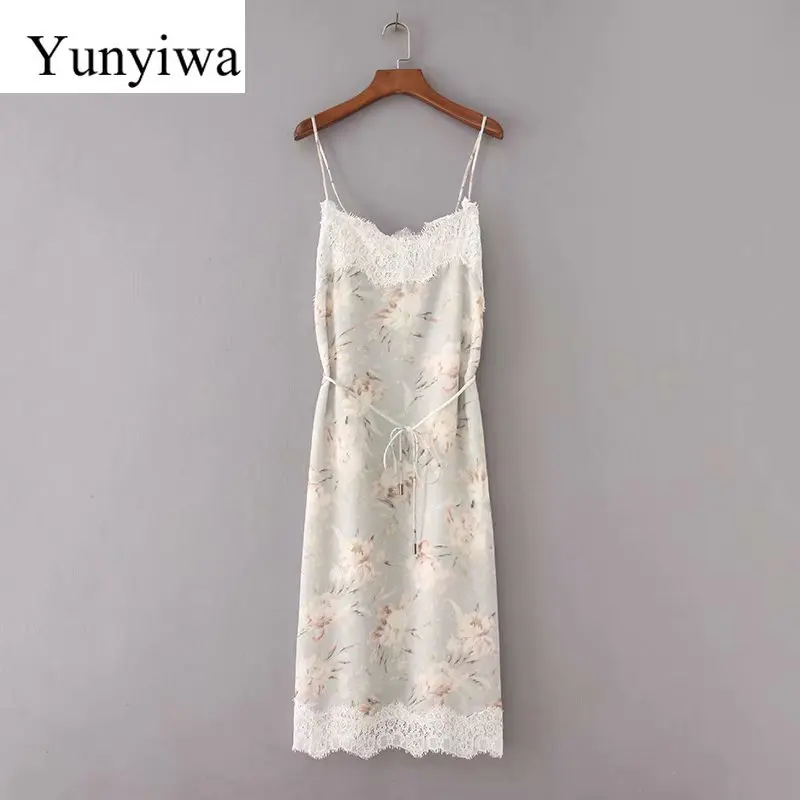 2019 женское уличное кружевное лоскутное платье на бретельках с принтом, женские шикарные длинные платья на шнуровке, повседневные платья для вечеринок