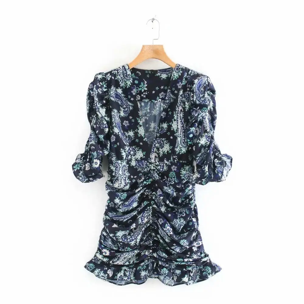 Женское винтажное Плиссированное мини-платье с v-образным вырезом и принтом в виде орехов кешью, с коротким рукавом, модель DS3550, 2020