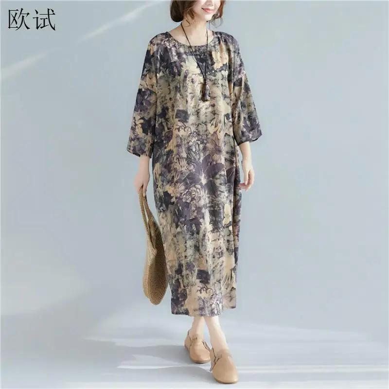 В режиме реального времени и художественное Ретро женское платье, платье из хлопка и льна с принтом, на шнуровке, тонкое и длинное платье, длинная юбка, длинное платье