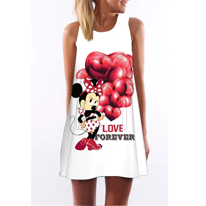 Платье Микки Маус сексуальное мини-платье с открытыми плечами без рукавов с круглым вырезом 2020 летнее женское повседневное свободное пляжн...