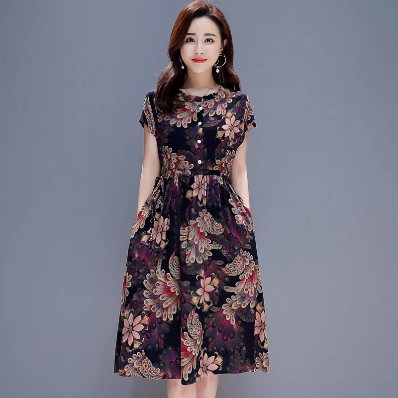 Летнее хлопковое платье большого размера 5XL Женские миди платья для вечерние с круглым вырезом Свободные Большие размеры женское Повседнев...